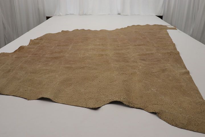 Back Country is a thick, rugged leather with a worn-in, rustic look. This unique leather has a nap texture comparable to a rough suede. Back Country also has a contrasting smooth texture that is found randomly across the hide giving the leather a signature "broken-in" look that is impossible for real leather enthusiasts to resist! Made in Italy.  Order a sample today before this hide is gone so you can see and feel how the leather will work for your project.  The piece pictured is the piece you will receive.  Approx Weight 3.5-4.5 oz/sq.ft. Approx Thickness: 1.4-1.8 mm.