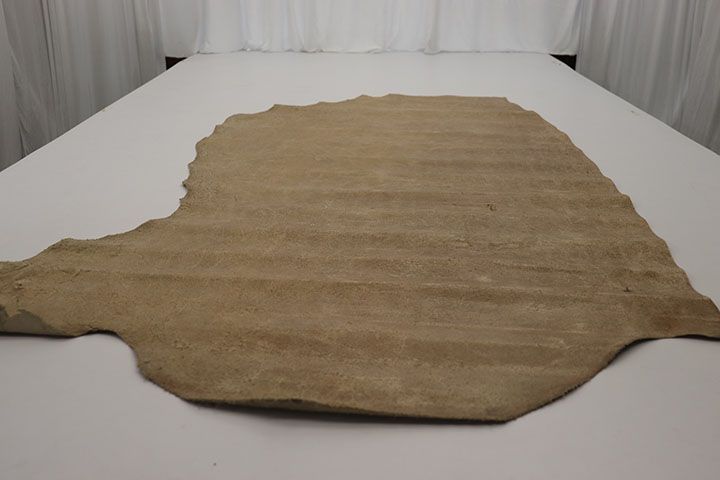Back Country is a thick, rugged leather with a worn-in, rustic look. This unique leather has a nap texture comparable to a rough suede. Back Country also has a contrasting smooth texture that is found randomly across the hide giving the leather a signature "broken-in" look that is impossible for real leather enthusiasts to resist! Made in Italy.  Order a sample today before this hide is gone so you can see and feel how the leather will work for your project.  The piece pictured is the piece you will receive.  Approx Weight 3.5-4.5 oz/sq.ft. Approx Thickness: 1.4-1.8 mm.