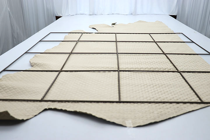 • This is a  gorgeous top grain leather that is embossed to give the appearance of a quilted leather. We are proud to offer this beautiful premium embossed remnant at an exceptional value!!  This is a mixed lot, color will vary from hide to hide.  The piece pictured is the piece you will receive.  Approx Weight 2.6 - 3.0 oz/sq ft. Approx Thickness 1.0 - 1.2 mm