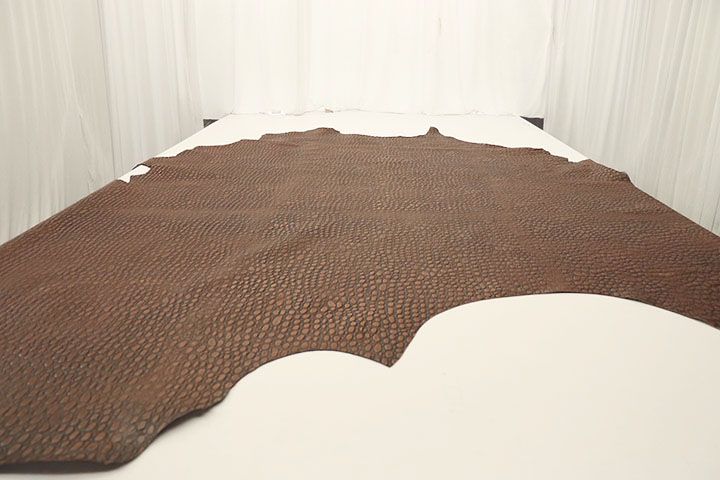 • This is a stunning, unique embossed leather. Crafted with meticulous attention to detail, each inch of this leather is a masterpiece of texture and pattern. Run your fingers across its surface, and you'll feel the gentle ridges and valleys, reminiscent of the creature itself. Not just a feast for the eyes, this leather is also a practical choice for those seeking durability and longevity. Resilient yet supple, it promises to withstand the rigors of daily use while maintaining its luxurious appearance for years to come. Approx Weight 2.6 oz/sq ft. Approx Thickness 1.0-1.1 mm.