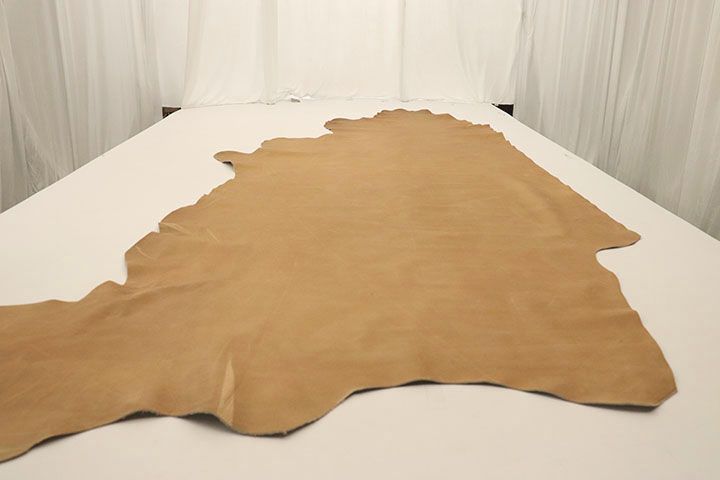 Golden Moccasin Distress is a beautiful full grain leather finished with pure aniline dyes. Waxes are also added to give the leather an extra supple feel. The leather has a very appealing warm golden brown color that will complement nearly any decor. PLEASE NOTE: Natural markings WILL be present including scratches, healed insect bites, scars, and brands. For many, this is the signature of real leather but if you do not appreciate natural markings this is not the leather for you - see pictures for examples. LHS is proud to offer this premium full grain leather at true wholesale prices. Approx. Weight: 3.5 oz- sq/ft. Approx.Thickness: 1.2-1.4 mm.