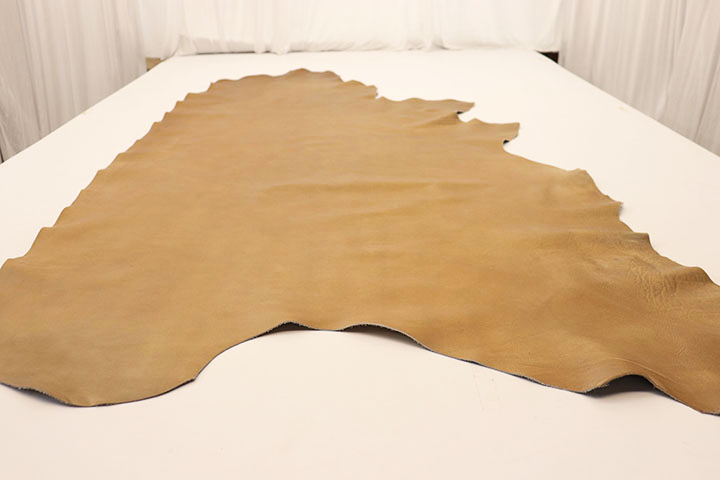 Golden Moccasin Distress is a beautiful full grain leather finished with pure aniline dyes. Waxes are also added to give the leather an extra supple feel. The leather has a very appealing warm golden brown color that will complement nearly any decor. PLEASE NOTE: Natural markings WILL be present including scratches, healed insect bites, scars, and brands. For many, this is the signature of real leather but if you do not appreciate natural markings this is not the leather for you - see pictures for examples. LHS is proud to offer this premium full grain leather at true wholesale prices. Approx. Weight: 3.5 oz- sq/ft. Approx.Thickness: 1.2-1.4 mm.