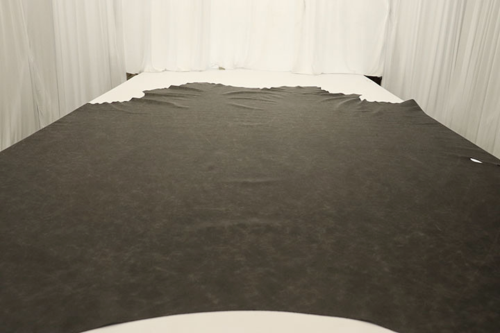 Mountain Smoke Distress is a smoky grey brown pigmented upholstery leather with subtle light undertones and a beautifully distressed finish. Its weathered appearance evokes a sense of rugged elegance, making it a versatile choice for both rustic and contemporary designs. The soft tones create depth and texture, while the durable finish ensures lasting appeal. Perfect for crafting statement furniture or accent pieces, Mountain Smoke Distress adds a sophisticated, lived-in charm to any interior space. Approx weight of hide: 2.6 oz/sq.ft. Approx thickness: 1.0-1.2 mm
