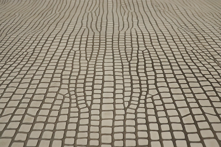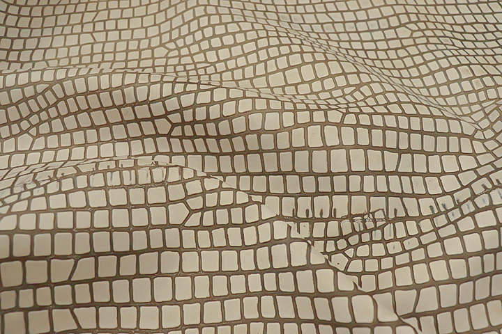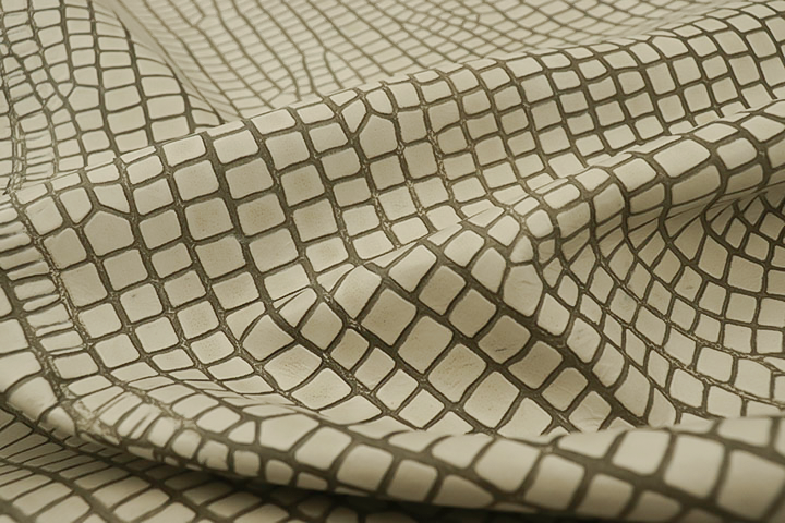 • Reptilian Frost is a bold, full-grain embossed leather with an exotic reptile texture. Gorgeous ivory tones are layered with dark, smoky undertones, creating a dramatic, high-contrast finish. The sculpted, scaled pattern gives each hide a sense of movement and depth, making it ideal for high-impact upholstery, luxury interiors, or standout automotive applications. Approx Weight 2.6 - 3.0 oz / sq ft. Approx. Thickness 1.0- 1.2 mm