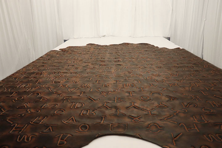 Rancher's Mark is a premium, full-grain upholstery leather with a bold, authentic, branded character. Each hide features an embossed brand pattern, adding rustic charm and western appeal to your projects. The leather has a rich brown color, with light brown multitone throughout. Approx Weight 2.6 - 3.0 oz / sq ft. Approx. Thickness 1.0- 1.2 mm