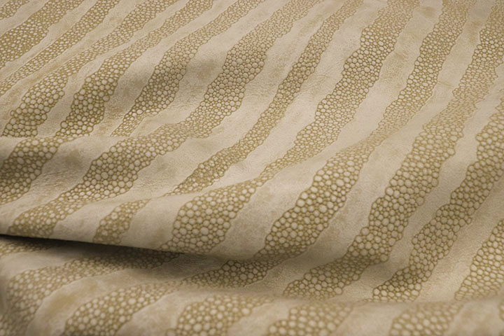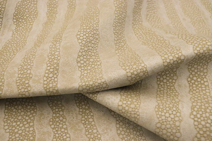 Champagne Fizz is an elegant ivory upholstery leather with warm tan undertones and an embossed texture reminiscent of bubbles in a champagne glass. Its soft, luminous color and refined surface bring a light, sophisticated feel, making it a perfect choice for bright, elevated upholstery designs. Approx Weight 2.6 - 3.0 oz / sq ft. Approx. Thickness 1.0- 1.2 mm