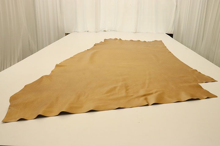 Kodiak Bear is a beautiful, multitone golden tan hide. This is a mixed lot, meaning color will slightly vary from hide to hide and are generally ideal for smaller projects. Remnants may have deep fold lines that could impact use, please review images carefully. The piece pictured is the piece you will receive. Please contact our sales team with any questions. LHS is proud to offer this premium full-grain leather as a partial hide at true wholesale prices! Approx. weight: 2.6 oz/sq ft. Approx. thickness: 1.0–1.2 mm