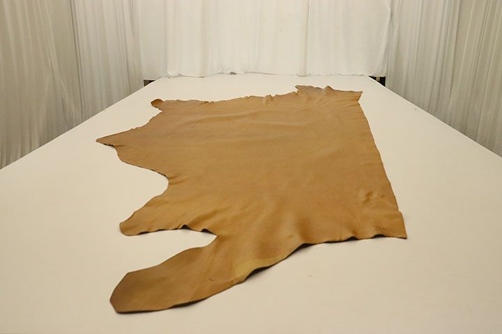 Kodiak Bear is a beautiful, multitone golden tan hide. This is a mixed lot, meaning color will slightly vary from hide to hide and are generally ideal for smaller projects. Remnants may have deep fold lines that could impact use, please review images carefully. The piece pictured is the piece you will receive. Please contact our sales team with any questions. LHS is proud to offer this premium full-grain leather as a partial hide at true wholesale prices! Approx. weight: 2.6 oz/sq ft. Approx. thickness: 1.0–1.2 mm