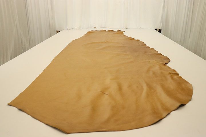 Kodiak Bear is a beautiful, multitone golden tan hide. This is a mixed lot, meaning color will slightly vary from hide to hide and are generally ideal for smaller projects. Remnants may have deep fold lines that could impact use, please review images carefully. The piece pictured is the piece you will receive. Please contact our sales team with any questions. LHS is proud to offer this premium full-grain leather as a partial hide at true wholesale prices! Approx. weight: 2.6 oz/sq ft. Approx. thickness: 1.0–1.2 mm