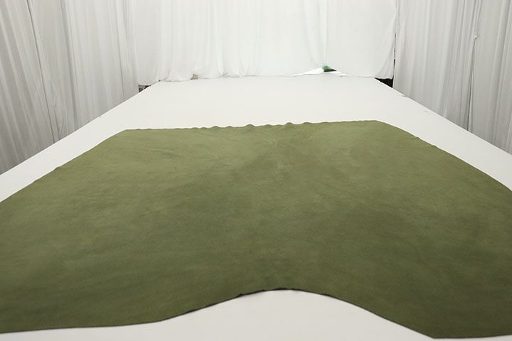 Premium Italian suede is here!!! Nothing beats the silky soft touch of this gorgeous Olive Green Suede - ideal for upholstery, handbags, and general leathercraft. The suede pictured on the table is not the exact piece you will receive but will be similar in size, color & shape. PLEASE NOTE: Suede does not have a protective topcoat & will need to be treated with stain protector if desired (available at most large retailers). Beautiful suede leather at an exceptional price! Approx Weight 3.0 oz/sq.ft. Approx Thickness: 1.2 mm