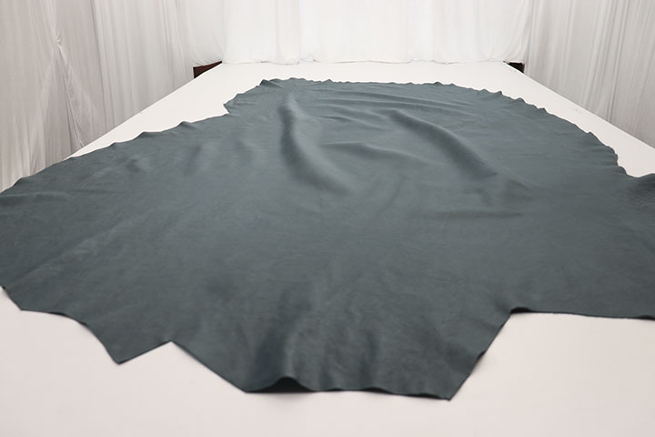 • Parisian Blue is a rich, smokey blue full grain leather that has a refined, contemporary appeal. Its smooth, luxurious finish makes it ideal for upscale upholstery, adding a sleek and stylish touch to any project. This leather will develop a rich patina over time, creating a modern yet timeless aesthetic, with a distinctive cool-toned hue that evokes a sense of calm and understated luxury. PLEASE NOTE: Natural markings WILL be present including scratches, healed insect bites, scars, and brands. For many, this is the signature of real leather but if you do not appreciate natural markings this is not the leather for you - see pictures for examples. Approx. weight: 2.6 - 3.0 oz/sq ft. Approx. thickness: 1.0 - 1.2 mm.